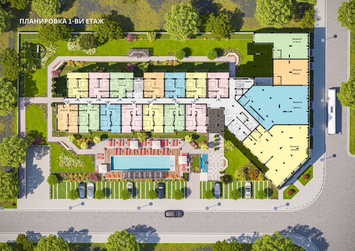 🔹 Проект „Emilia Romana Avenue“ е най-новото ни предложение в сърцето на Слънчев бряг – модерен жилищен комплекс в строеж, състоящ се от две секции (А и Б), разположени на 6 етажа с общо 109 апартамента.