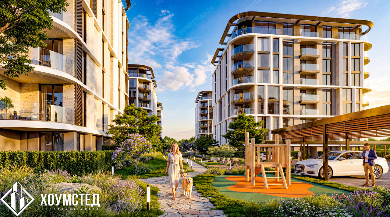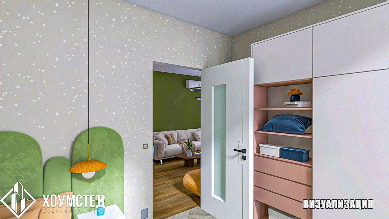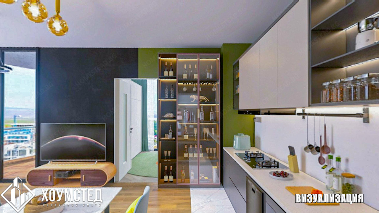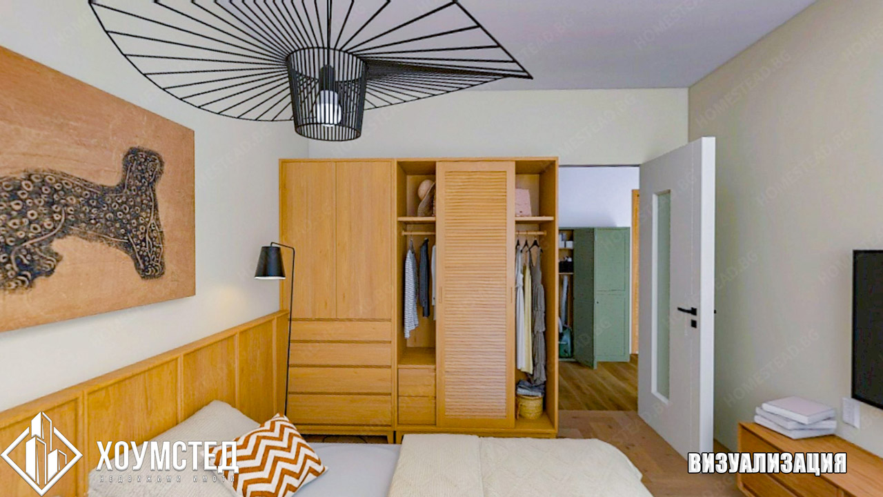 Към имота е изготвен цялостен интериорен дизайн от „Хоумстед“, представен чрез визуализации към обявата.